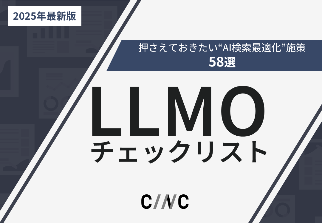 CINCでこれまでに蓄積した膨大なデータの分析知見とSEOのナレッジ・ノウハウ、数百社規模の支援実績をもとに、生成AI時代における新しいコンテンツ評価軸を整理したホワイトペーパー「LLMO(大規模言語モデル最適化)チェックリスト」を制作しました。